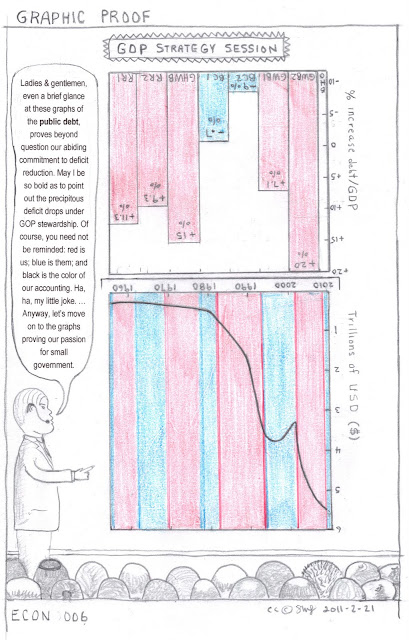 If you really want the “right” side-up of GOP deficit records, visit http://en.wikipedia.org/wiki/National_debt_by_U.S._presidential_terms and also check out the links to government and other sites. The Ten Trillion Dollar Question: Is 30 years of data not enough to prove that deficit reduction is a promise devoid of substance or intention?