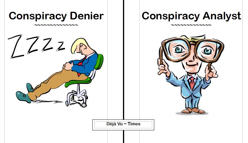 We love the real and fictional conspiracies of crime chronicles, court-room dramas, and conspiracy plots in plays, novels, and movies,* but somehow conspiracy in corporate culture, in politics, and in the pursuit and protection of power, gain, and glory goes right over out ever-nodding heads, despite millennia of conspiracy history and tens of thousands of whistle-blowers, witnesses, books, and documentaries. We have been dupes of the CiA mantra “conspiracy theory” long enough. It is time, we dupes admit, at last, en masse, that almost all (could it be more than 90%1) of what we see and hear from the powers in 2021 is conspiracy driven. All those micro, soft-tissue flashes of duping and disaster delight are now as predictable in elite face-weather2 as earth weather used to be.